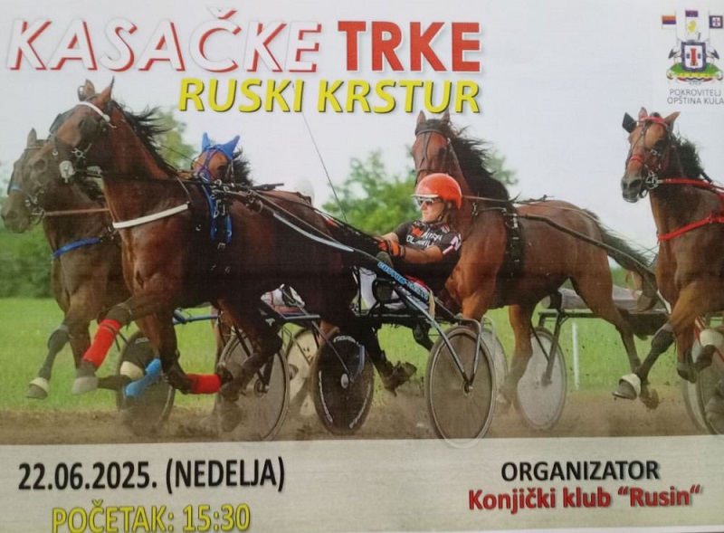 На Хиподрому у Руском Крстуру одржаће се касачке трке. Програм почиње у недељу, 22. јуна у 15.30 часова. Организатор је Коњички клуб „Русин“, а покровитељ је Општина Кула. Трке се одржавају по правилнику Српског касачког савеза а сва грла која учествују морају имати уверење о здравственом стању, као и доказ о регистрацији у Српском касачком савезу. У случају лоших временских услова трке се одлажу до даљњег.