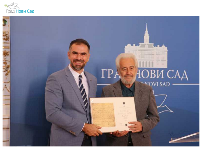 ГРАДОНАЧЕЛНИК МИЋИН УРУЧИО НАГРАДУ „МИРОСЛАВ АНТИЋ“ ПЕСНИКУ ЂОРЂУ СЛАДОЈУ