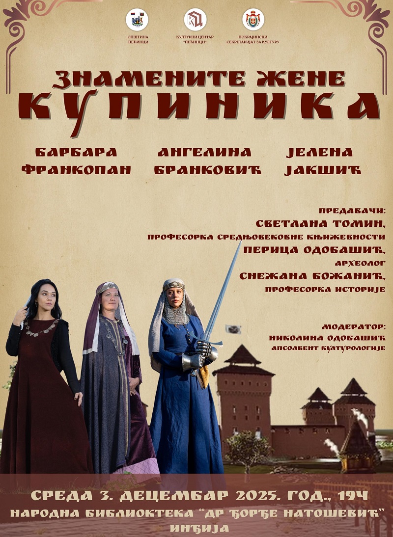Културни центар „Пећинци“ под покровитељством Покрајинког секретаријата за културу, јавно инфромисање и односе с верским заједницама и Општине Пећинци наставља са едукативним пројектом „Знамените жене Купиника – серија предавања“, који има за циљ истраживање и представљање улоге жена у историји Србије у периоду од друге половине 15. до половине 16. века. Пројекат посебно истиче допринос владарки из породице Бранковић: Барбаре Франкопан, Ангелине Бранковић и Јелене Јакшић.