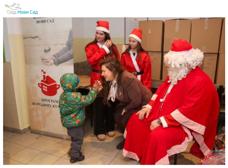 Традиционално, и ове године, малишане су обрадовали Деда Мраз и његови помагачи – млади волонтери Црвеног крста Новог Сада, који су празничном атмосфером, осмесима и пажњом улепшали новогодишње празнике деци и њиховим породицама.