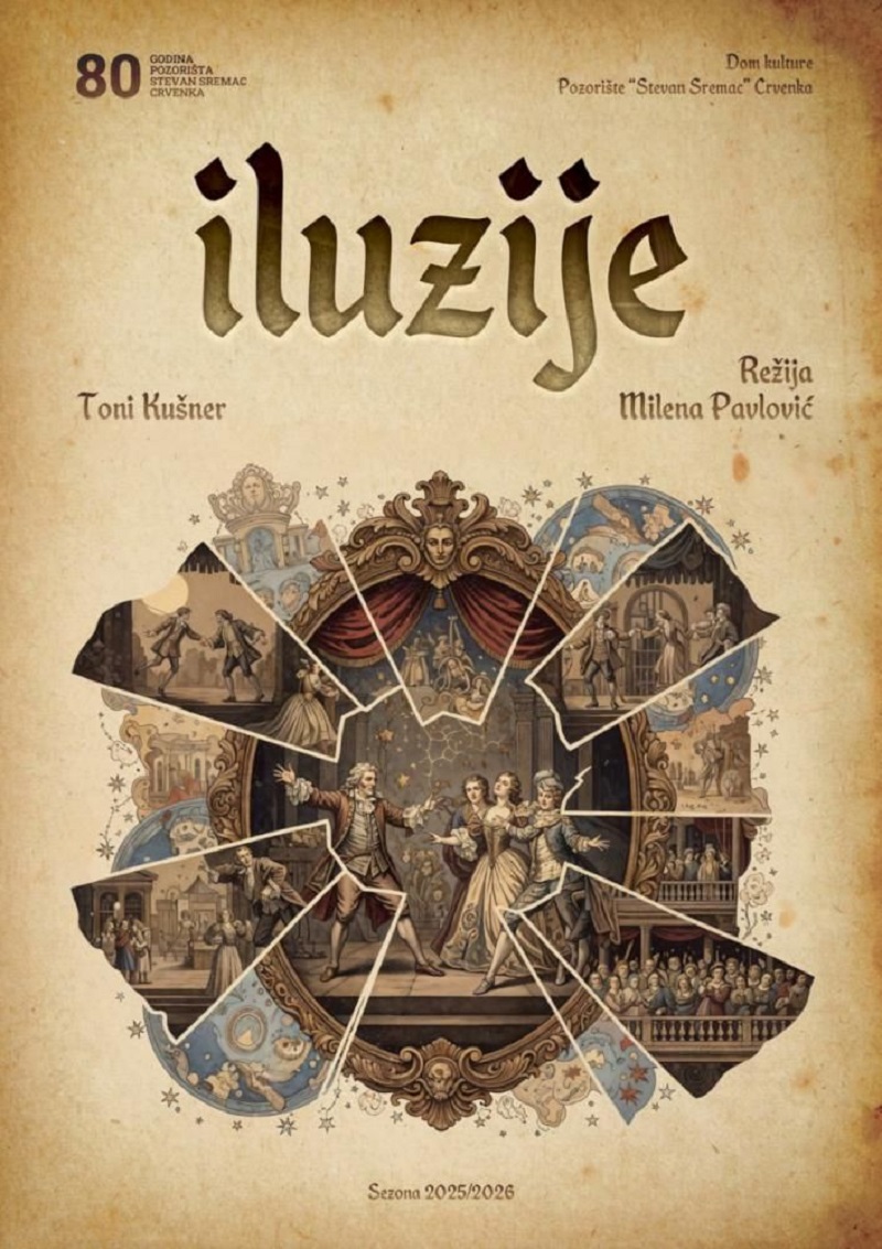 Премијера представе ,,Илузије“, аутора Тонија Кушнера, у режији Милене Павловић, а у извођењу глумаца Позоришта ,,Стеван Сремац“ Дома културе у Црвенки, биће одржана у суботу, 17. јануара 2026. године, са почетком у 20 часова.