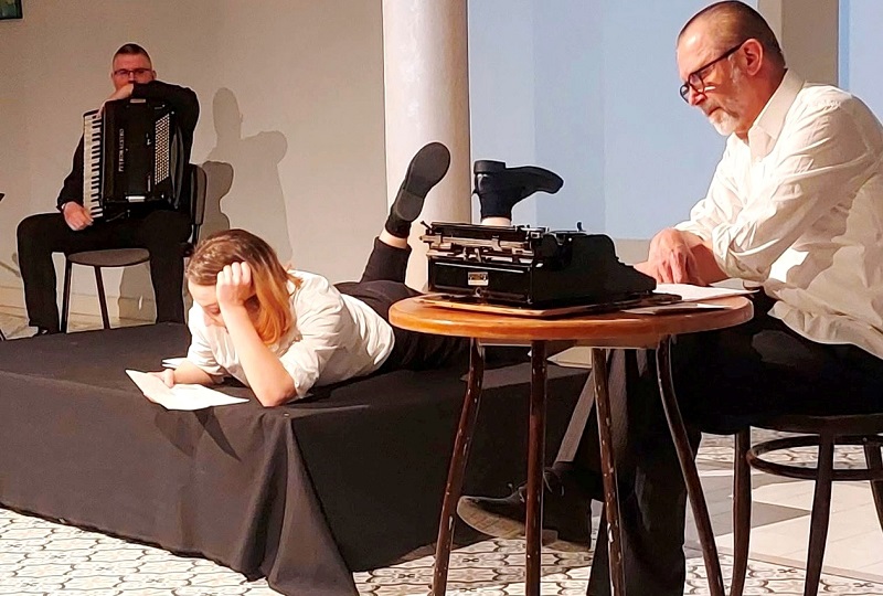 Режију у представи о Данилу Кишу потписује Марија Барна Липковски, а улоге тумаче Алиса Лацко и Тибор Какоњи, у пратњи Крунослава Агатића на хармоници. У ранијим бројевима нашег листа писали смо о четири гостовања ове представе у Зрењанину, Аранђеловцу, Панчеву и Сомбору. Турнеја је настављена 25. марта у Крушевцу, затим у Зајечару, Нишу, Београду, Суботици и Сенти. Турнеју је материјално подржала Влада Мађарске, у оквиру манифестације Сезона српско-мађарске културе 2026.